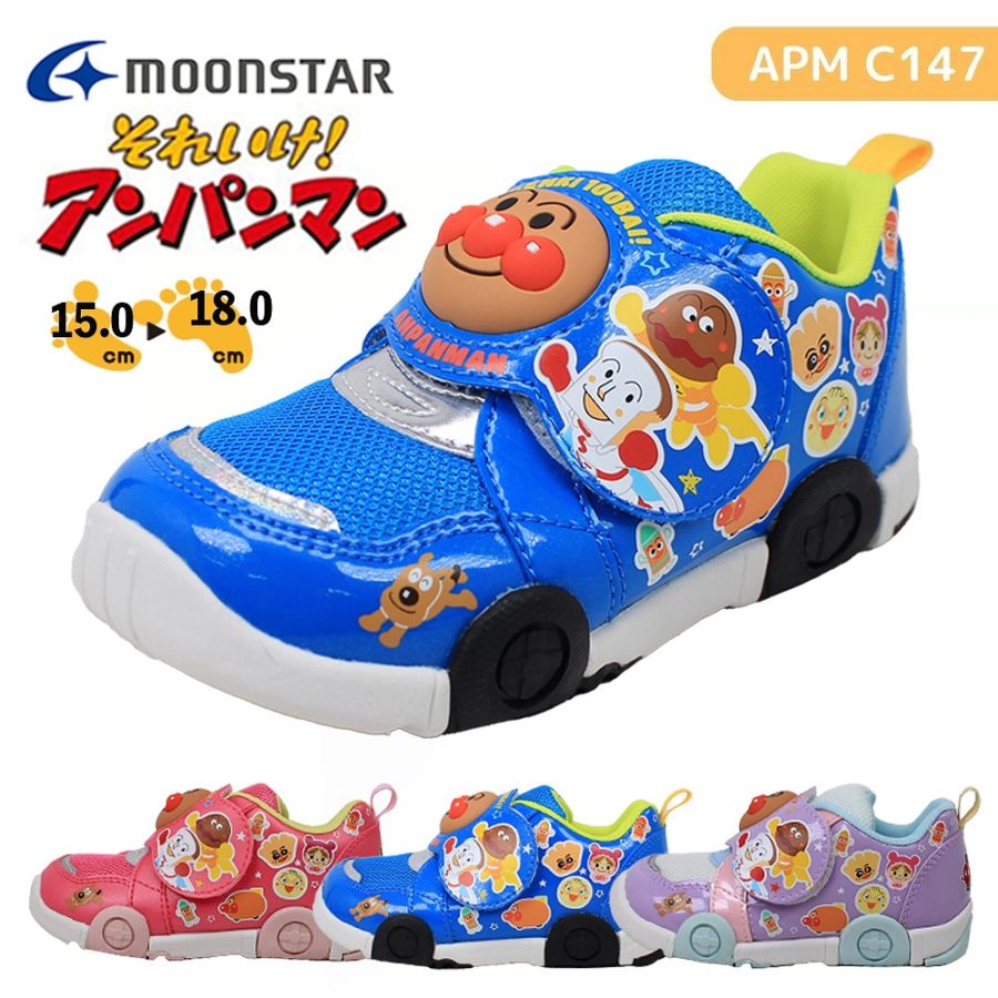 アンパンマン 靴 キッズ シューズ ムーンスター スニーカー 運動靴 147 マジックテープ かわいい ブルー パープル ピンク 【子供・キッズ】