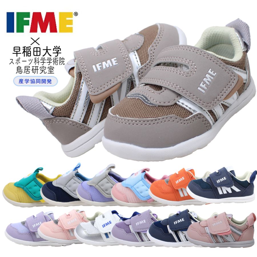 イフミー IFME キッズ 子供 スニーカー 6311 マジックテープ ネイビー パープル ピンク ベージュ シンプル 運動靴 通学 カジュアル シューズ かわいい 【子供・キッズ】