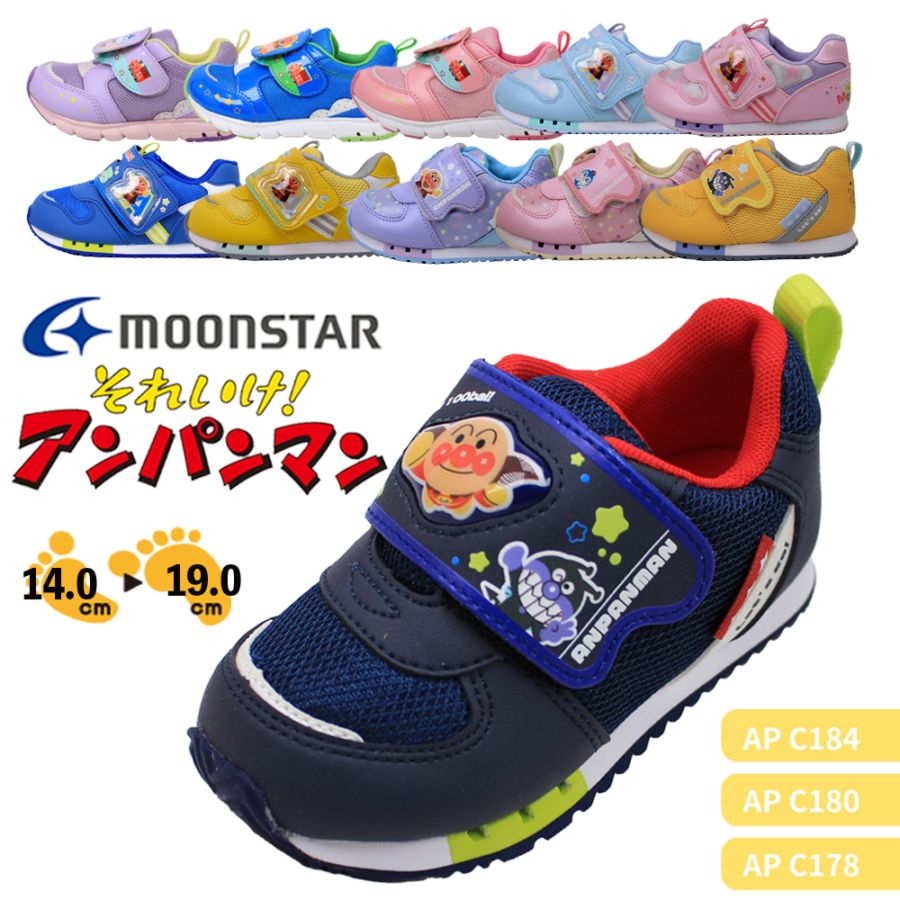 アンパンマン 靴 キッズ シューズ ムーンスター スニーカー 運動靴 178 180 184 マジックテープ ブルーパープル ピンク イエロー 【子供・キッズ】