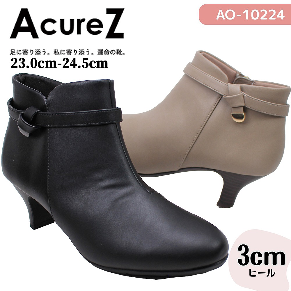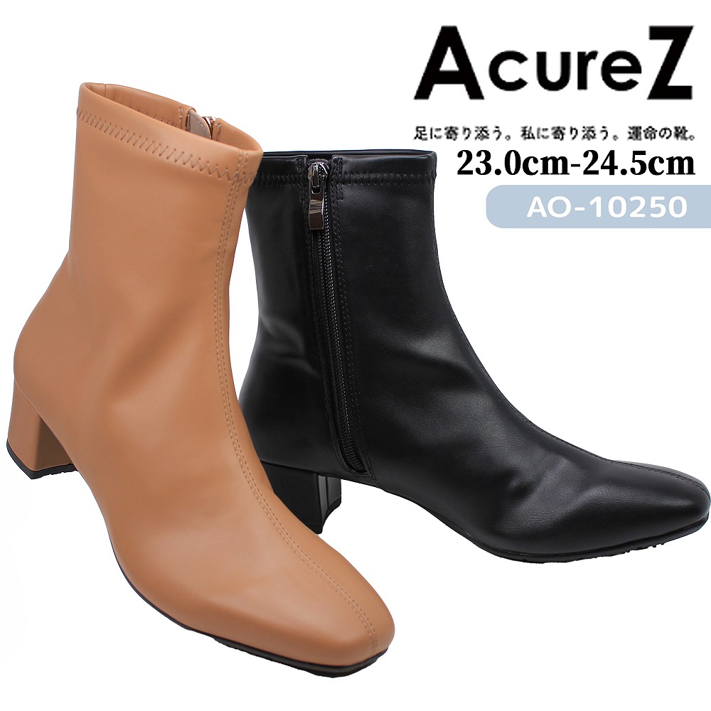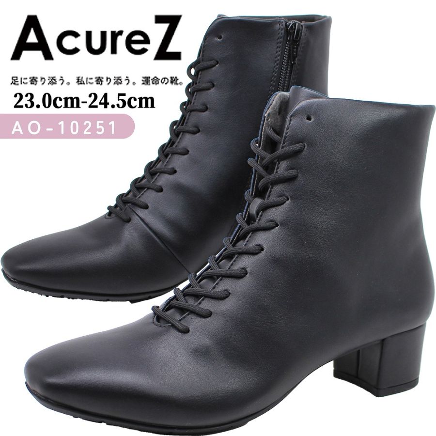 アキュアーズ レディース ショートブーツブーツ ブラック ファスナー付き 10251 シンプル アシックス商事 AcureZ 可愛い 靴 おしゃれ シューズ カジュアル 【レディース】