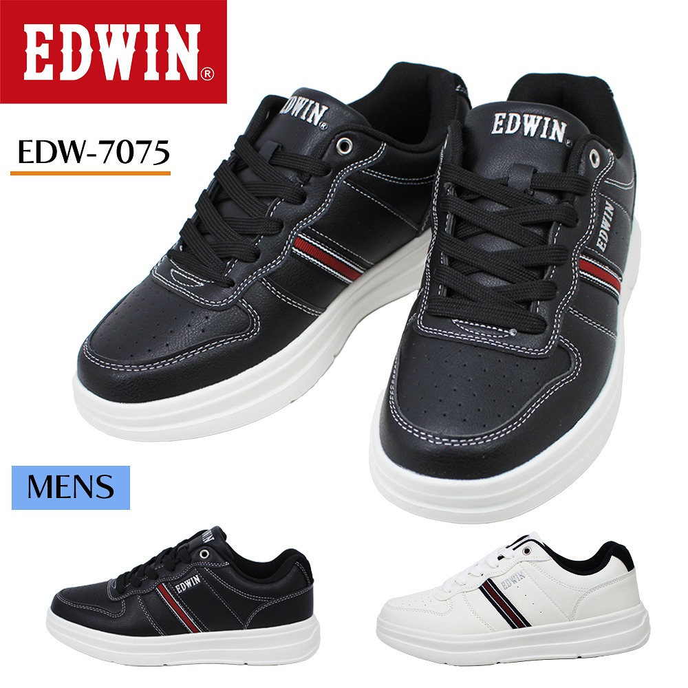 エドウィン メンズ スニーカー 靴 EDW-7075 ブラック ホワイト ローカット ウオーキング 運動 軽量 軽快 疲れない 滑りにくい カジュアル シューズ 通勤 通学 EDWIN 【メンズ】