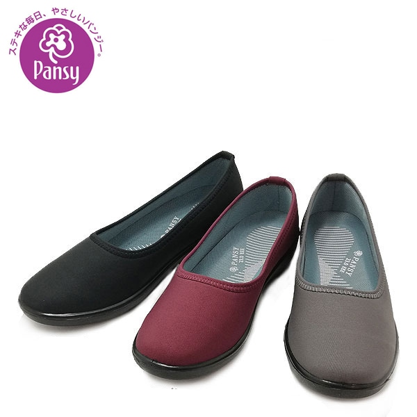 Pansy パンジー 生活防水 サイドゴアシューズ 3E 一体成型 シンプル おでかけ 2903 レディース ブラック ワイン グレー 【レディース】