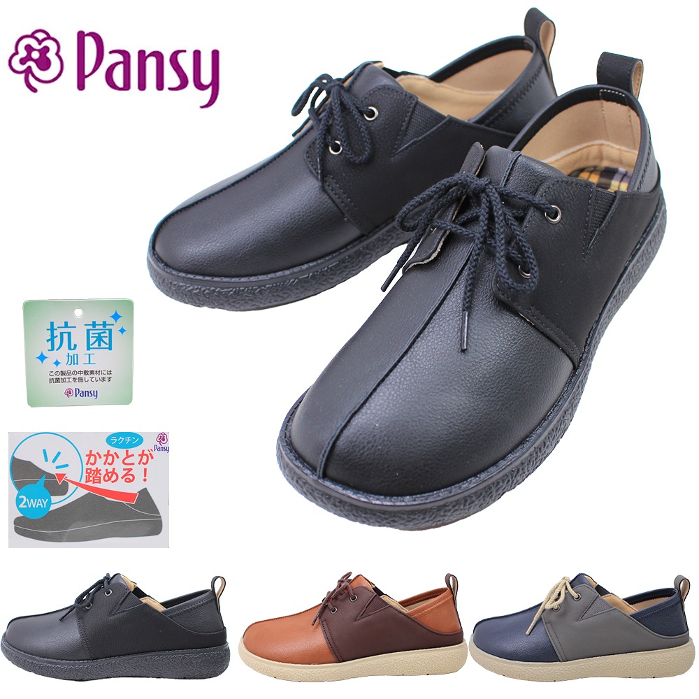 スリッポン 2 WAYS カジュアルシューズ レディース ブラック キャメル グリーン 幅広4E レザー パンジー Pansy PS1520 おしゃれ 【レディース】