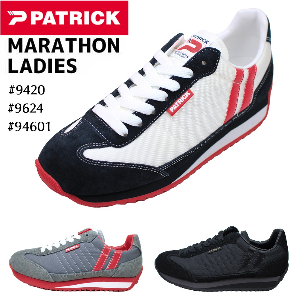 パトリック マラソン レディース スニーカー 運動靴 942451 BKBERRY 日本製 靴 ランニングシューズ 軽量 ブラック/グレー おしゃれ PATRICK MARATHON 【レディース】