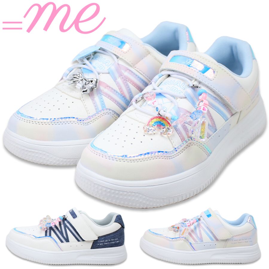 イコールミー キッズ スニーカー 子供靴 運動靴 マジックテープ 女の子 ME-3794 デニム マルチ ホワイト =ME EQUAL ME おしゃれ かわいい キラキラ 【子供・キッズ】