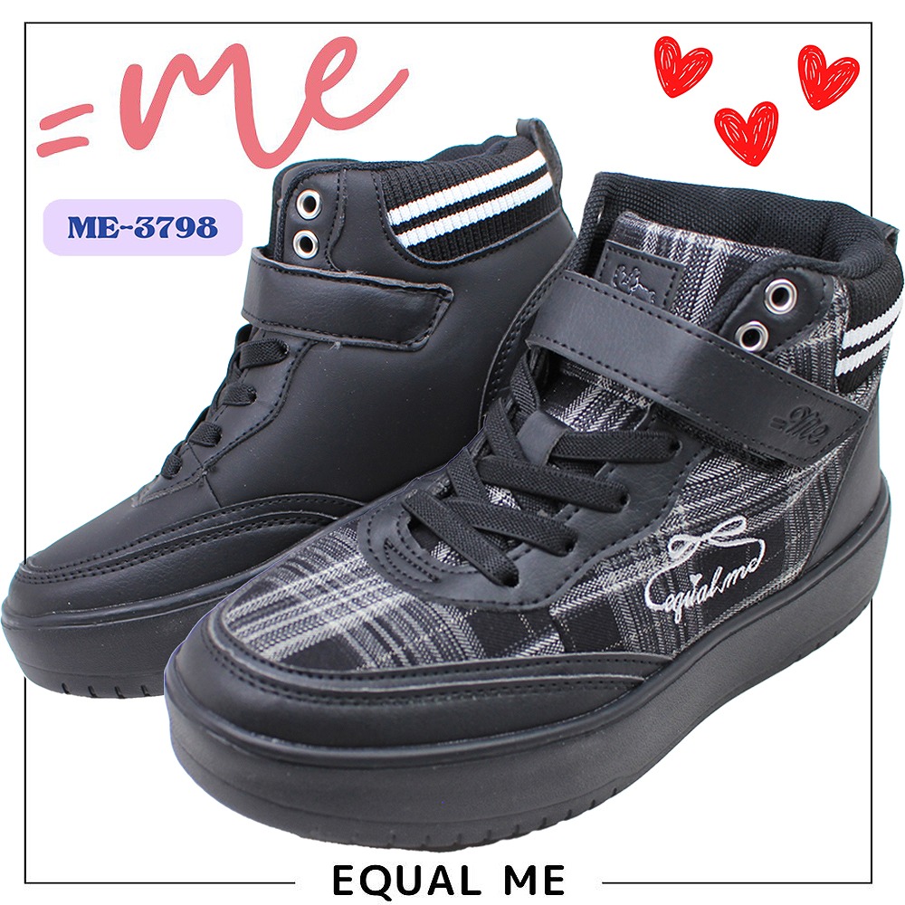 イコールミー 女の子 ハイカット スニーカー キッズ 厚底 マジックテープ ブラック グレー 軽量 3798 運動靴 シューズ かわいい カジュアル =ME EQUAL ME 【子供・キッズ】