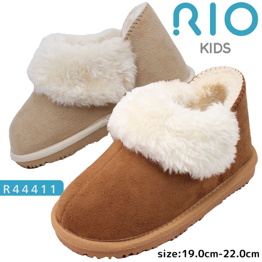 RIO ムートンブーツ キッズ もこもこ ボア ふわふわ 保温 防寒 キャメル ベージュ かわいい ショートブーツ シューズ カジュアル 靴 冬 【レディース】