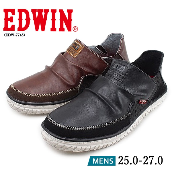 スリッポン スニーカー メンズ エドウィン EDWIN ブラック ブラウン 3E 防滑 軽量 幅広 2way かかと シンプル EDW-7745 【メンズ】