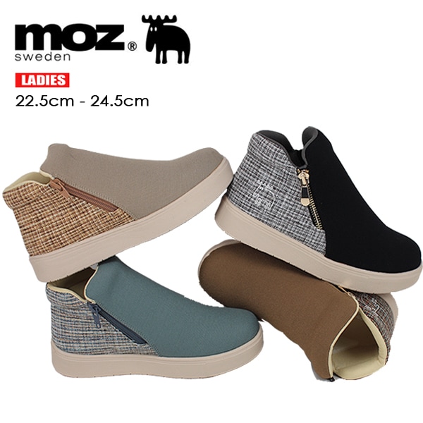 ショートブーツ モズ MOZ レディース ブラック ブラウン ブルー ベージュ ファスナー 履きやすい 軽量 4600 滑り止め フラットソール 暖かい 【レディース】