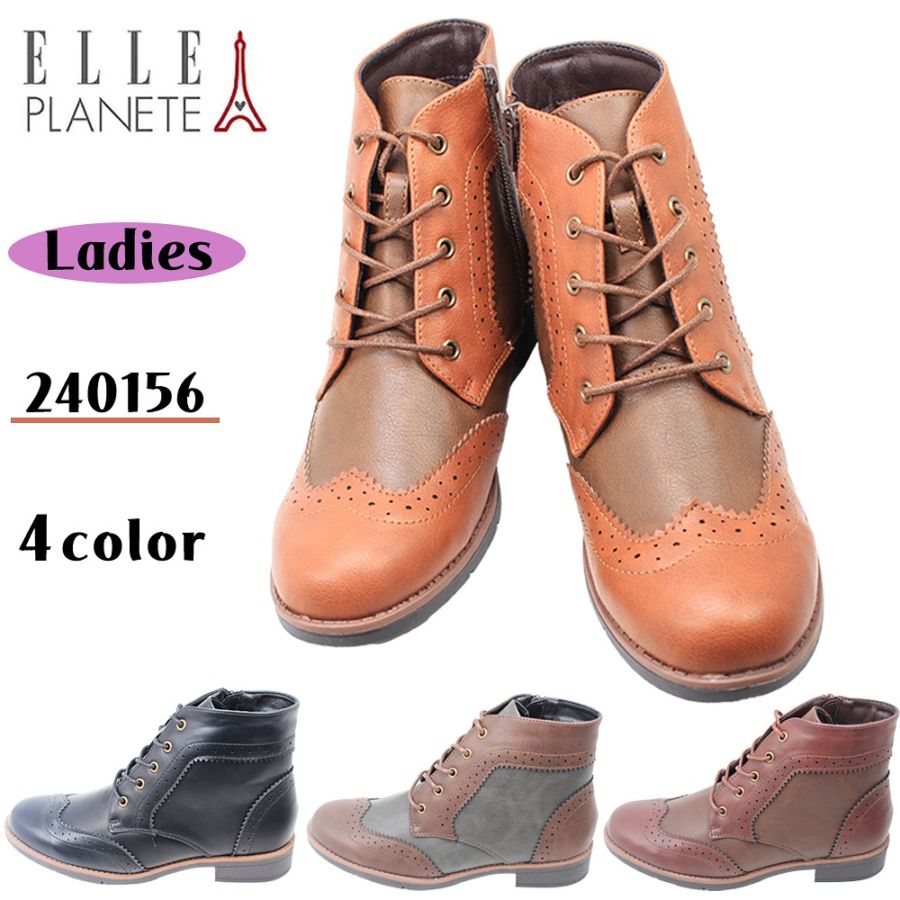 ELLE PLANETE エル プラネット レースアップブーツ ショートブーツ サイドファスナー 240156 レディース カジュアル おしゃれ 【レディース】
