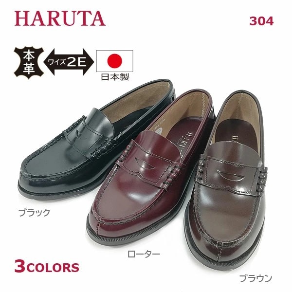 HARUTA ハルタ コインローファー EE 2E 新入学 新生活 定番 学生靴 牛革 本革 日本製 304 ブラック ブラウン ローター 【レディース】